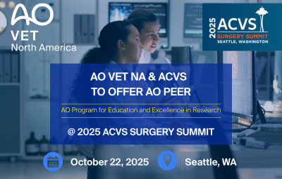 AO VET North America is proud to once again partner with the American College of Veterinary Surgeons (ACVS) to offer the AO Program for Education and Excellence in Research (AO PEER) Level 2 course at the 2025 ACVS Surgery Summit in Seattle, Washington.