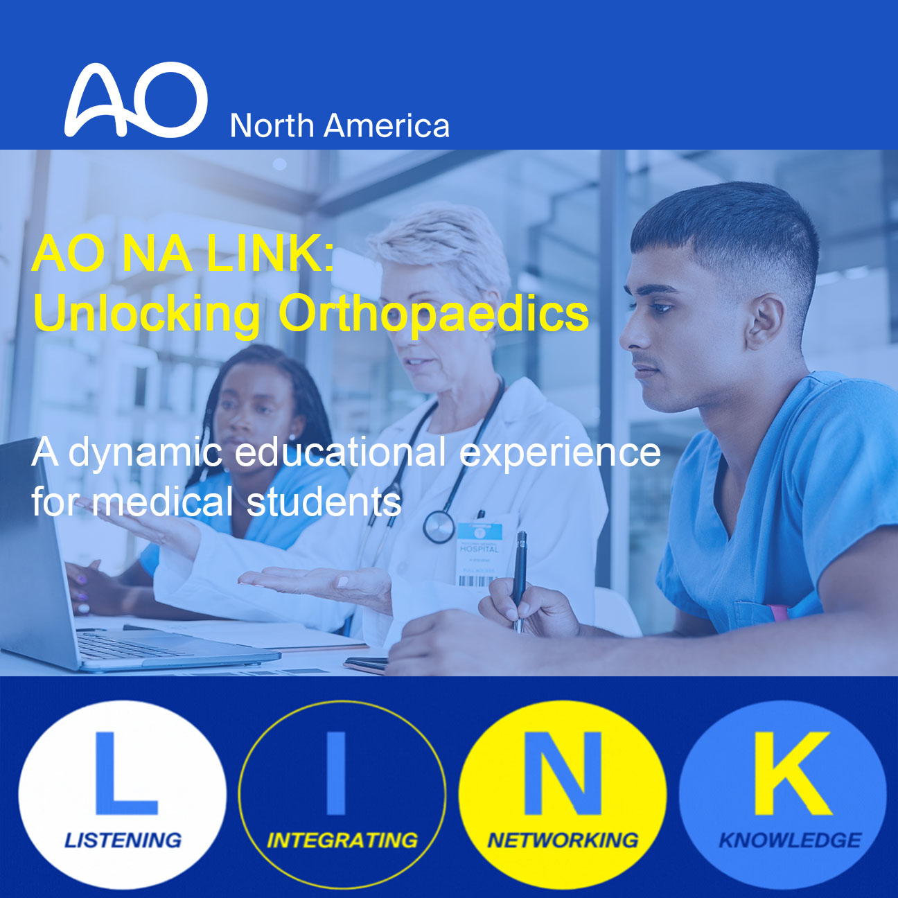 Now in its third year, AO NA Link is a webinar series for medical students eager to excel both academically and clinically. Explore fundamental concepts, sharpen your diagnostic skills through interactive case studies, and gain invaluable mentorship from seasoned clinicians. Whether you’re gearing up for exams or exploring potential specialties, AO NA Link provides the essential tools and insights to propel your medical career forward. Don’t miss this unique opportunity to learn, grow, and thrive!.gif?h=500&iar=0&w=1500&rev=eaea2eaeba2048699b11f3807724e4fd)