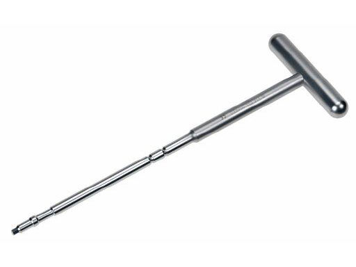The Knurled Handled Screwdriver allows application of the locking cap through the Rod Pusher or the Slotted Rod Guide.