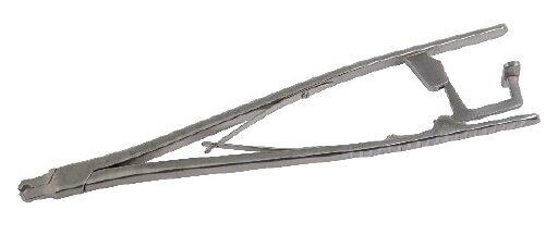 The additional curvature of the front element of the Holding Forceps allows for easier simultaneous manipulation during tightening of l ocking screw.