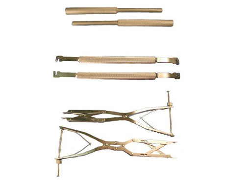 The Distraction Forceps allows for direct distraction on pedicle screws prior to ClickX head assembly, ie, allowing for easy posterior cage placement.