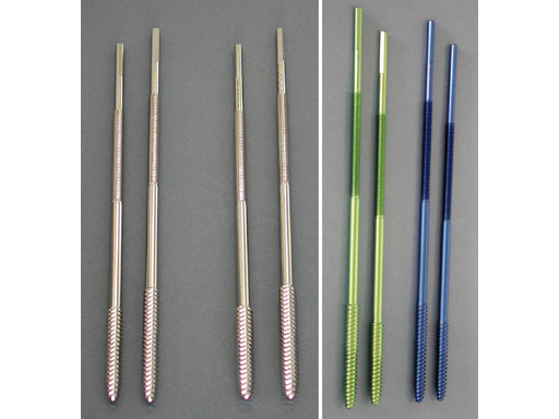 The smallest diameter is now 4.2 mm in lengths of 2540 mm. For the diameters 5.2, 6.2, 7.0, and 8.0 mm, a 25 mm long screw has been introduced for short pedicles.