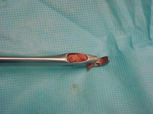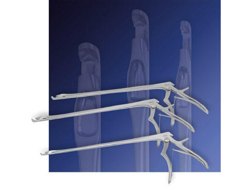The Laminectomy Punch with reservoir is used in spinal surgery for anterior and posterior approaches. In laminectomy, the reservoir collects bony chips that do not have to be removed after each individual cut, which saves OR time. The reservoir is smoothly embedded within the up-biting tip design with an angle of 40 degrees. Clogging is precluded by a funnel-shaped design that allows for subsequent chip expansion and thus facilitates passage of the resected tissue.