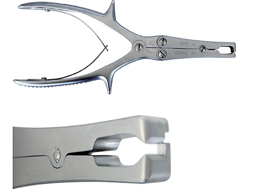 It is a forerunner for the upcoming ingenious new passer for wires or cables for cerclages. It will feature a wire/cable passer, twister and the cutter presented here.