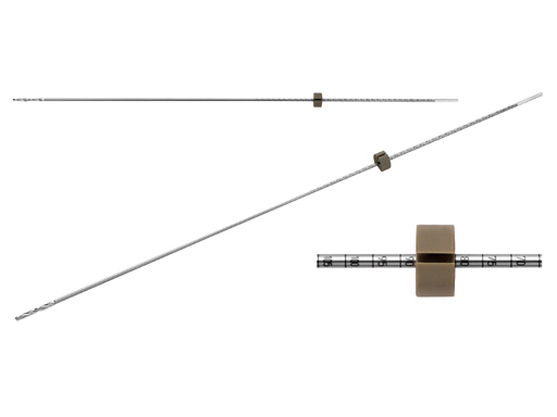 4. Pre-drill the hole with the calibrated 2.5 mm drill bit over the V-shaped channel ofthe percutaneous guiding instrument.