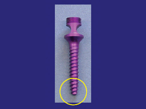 The new USS Paediatric Pedicle Screws are easy and quick to insert. This is due to the rounded and threaded tip and the double lead design, which allows for an immediate grip in the bone and a depth gain of almost 4.0 mm per 180 turn.
