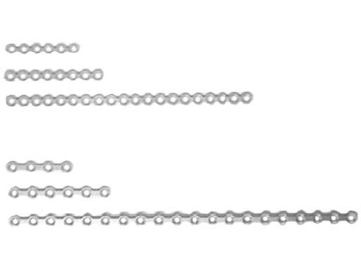 Shorter Adaption Plates (6 and 8 holes without intersection bars) for the 1.3 mm and 1.5 mm Compact Craniofacial Set will minimzie unnecessary cutting. For the 1.5 mm Compact Craniofacial Set shorter Adaption Plates with intersection bars are provided with 4 and 6 holes. The Adaption Plates can be bent in plane with the 3-Prong Bending Pliers of the 2.0 mm Compact Craniofacial Set.