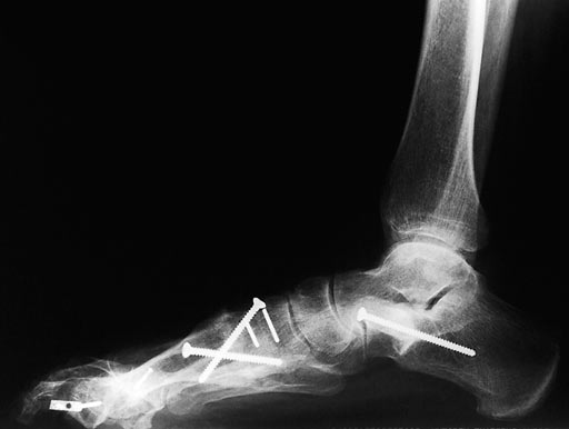 Compared to the staple technique, the usage of the Locking Two-Hole Plate is advantageous because implantation/explantation is easier and less violent, the different screw lengths provide more versatility, there is no temperature effect and less equipment is required. The risk of nonunion and local necroses is diminished.