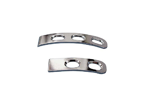 The Spring Plate 3.5 is intended to help reduce and stabilize small bone fragments when the fragments are too small to use a screw. Comminuted posterior wall fractures of the acetabulum are the most common indication. Plate function is achieved by sinking the teeth into the small fragments as a screw is tightened through one of the screw holes adjacent to the fracture margin. The screw transfers the prestress of the concave plate to a compressive force on the fragments, essentially acting as a permanent clamp. Alternatively this effect can be achieved with the low-profile pelvic reconstruction plate 3.5 which overlies the provisionally placed spring plate. As the reconstruction plate is lagged to the bone, the fracture fragments are compressed.