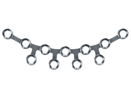The plates have a locking hole for many sizes of locking head and nonlocking head screws. They are designed for optimal fit in each anatomic area. Connecting ribs between the plate holes enable easy bending and contouring of the plates. The plates are of a boss and rib design, in which the weakest cross section is across the connecting ribs. When the plate is contoured, it deforms across the connecting ribs and not across the bosses. This assures that the threaded locking holes maintain their ability to lock to the screws distorting the internally-threaded holes.