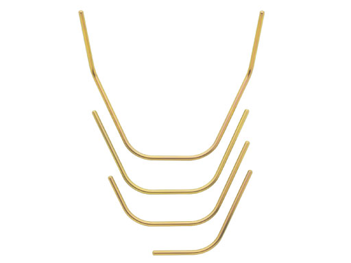The 4.0 mm titanium connecting rods are available in four sizes (full mandible, full mandible with ramus, three-quarter mandible, and one-half mandible). Anatomically pre-bent to the mandibular shape the metal rods cover a wide anatomic variety but can be contoured to match individual patient needs with the included rod bender.