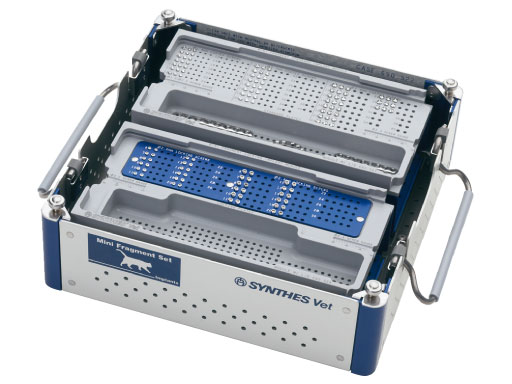 The mini fragment implant and instrument system combines existing 1.5, 2.0, and 2.4 implants (DCP, LC-DCP, and LCP) into an organized set. The implants are made of 316L stainless steel.