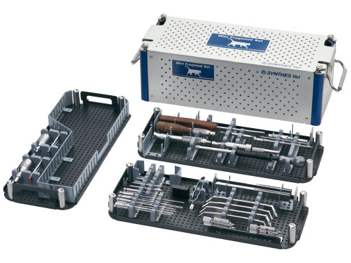 The set is designed as a compact, organized storage system in order to fit into the smaller sized autoclaves commonly used in veterinary clinics.