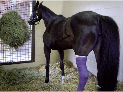 A 14-year-old Trakehner mare sustained a luxation of the proximal intertarsal joint (calcaneus and talus are displaced palmarly).