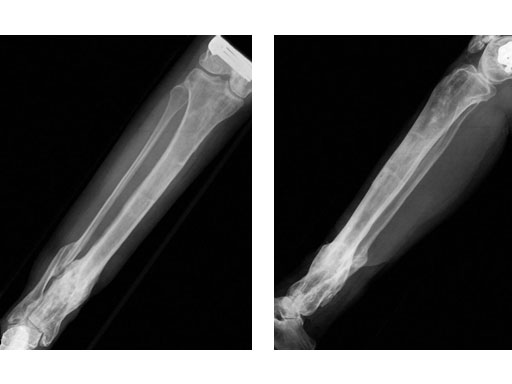 A 33-year-old female sustained a grade III open fracture of the right lower leg.