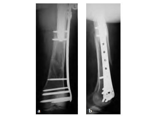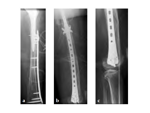 The 3.5 Locking Attachment Plate can also be used to prevent lateral screw pull-out in osteoporotic bone irrespective of a prosthesis or an intramedullary implant.
