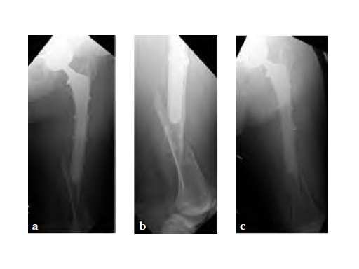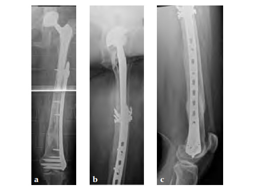 Case 1: A 78-year-old female sustained a periprosthetic fracture, Vancouver type C, 9 years after a total hip arthroplasty.