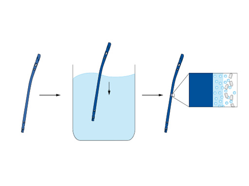 The mechanical properties of the nail are not affected by the coating. Tests on human specimens and plastic bones proved the coating to be resistant to the abrasive forces present during insertion into a narrow and moist bone canal. The surgical technique does not differ from the regular standard of care in ETN implantation.