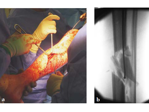 Despite improvements in the prophylactic and the therapeutic measures, soft-tissue damage and consecutive infection remain the major hurdles in the healing process of long bone fractures. Osteomyelitis is a consequence of local contamination by germs combined with a local and/or systemic immunodeficiency. Additionally, blood supply in the traumatized bone is disturbed which means systemically applied antibiotics cannot reach the fracture site. Consequently, this may lead to chronic osteomyelitis. Once local osteomyelitis has become manifest, removal of the implant and aggressive debridement of the infected bone as well as the soft tissue in combination with heavy local and systemic antibiotic therapy often represent the only option for effective treatment.