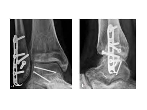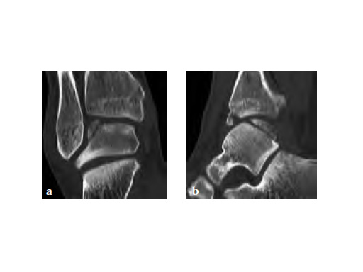 A 20-year-old construction worker fell from a 3 m height. He sustained a typical posterolateral impression and flake fracture of the talar dome.