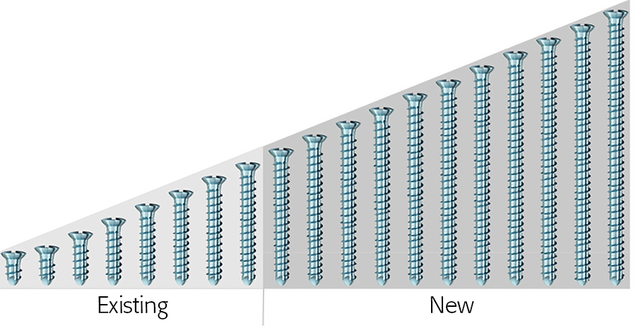 In April 2021, the MatrixMANDIBLE System was expanded with the new 2.4 mm Titanium Cortex Screw in lengths of 20–40 mm.