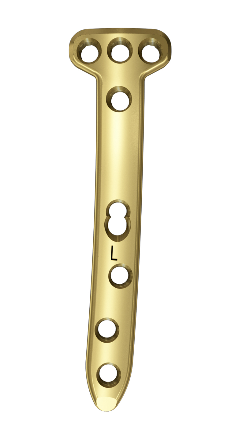- The new plate shape facilitates plate placement towards the medial side, providing support on the medialposterior edge of the tibial plateau. This also functions to help prevent neurovascular damage