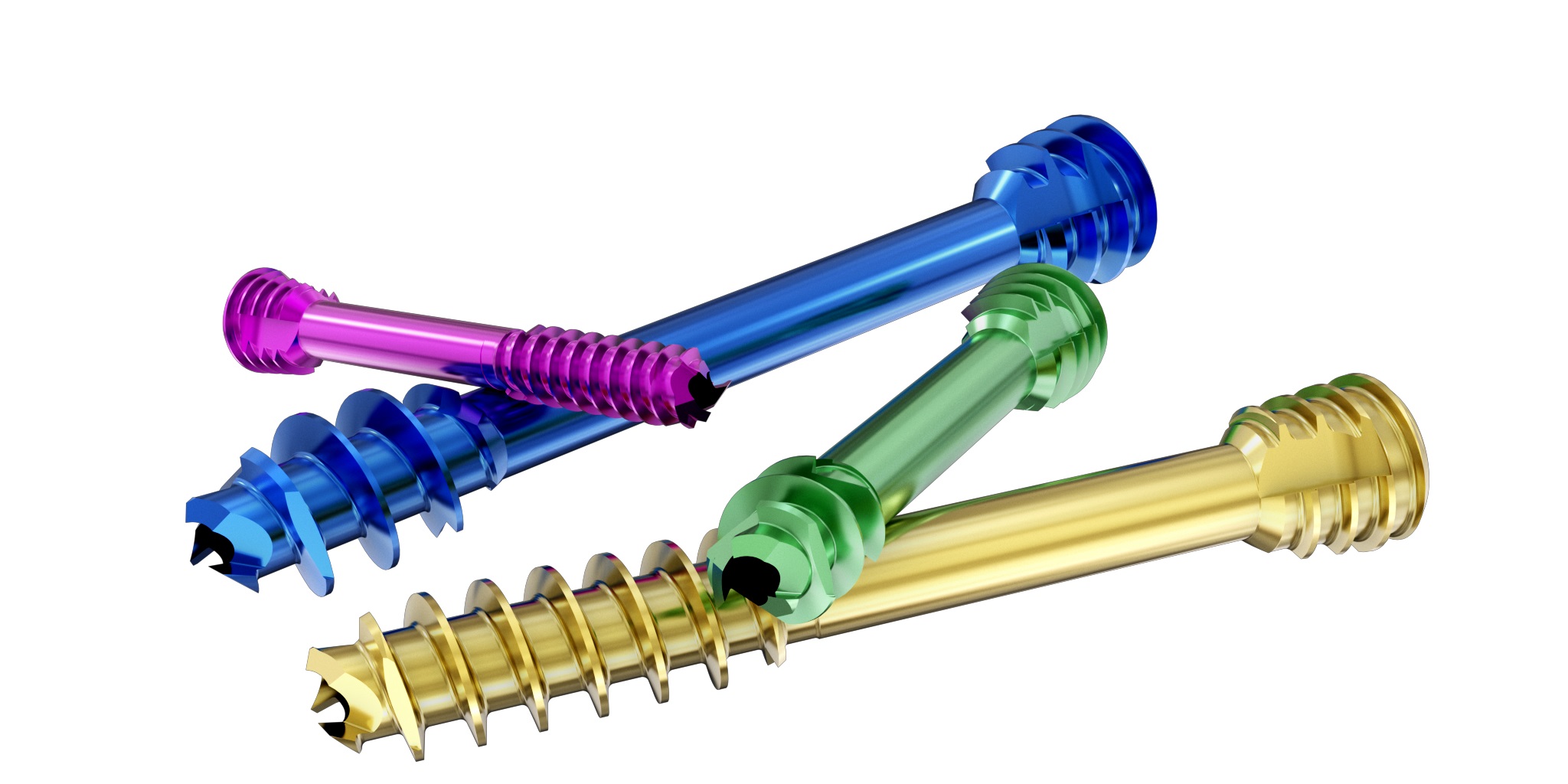 The new Partially Threaded Cannulated Compression Headless Screws have a compound cutting edge on the tip for easier insertion designed to reduce insertion force for cutting the thread into the bone. The thread on the shaft of the screw comes in two different lengths. A differential thread pitch between the tail and head of the screw generates compression. The wider distal threads advance into the far fragment faster while the proximal threads gradually enable the two fragments to compress. The optimal compression is provided when the screw is fully seated at or below the bone surface.