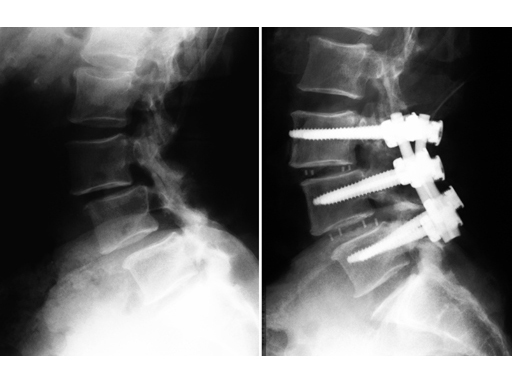 64-year-old woman, lateral, pre- and postoperative x-rays.