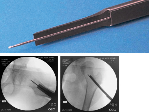 Users have found placement of the chisel difficult, especially in the deformed and narrow proximal femur frequently found in CP. The CAPOS system provides for insertion of the chisel over a guide wire, after insertion of the guide wire through an adjustable angled guide for precision osteotomy. Another feature is a cutting block that attaches to the chisel after placement; this ensures that the proximal osteotomy cut is firstly, the correct distance from the chisel to accommodate the plate offset, and secondly, parallel to the chisel. The plates have not been cannulated at this stage. With a single chisel track in the femoral neck it was felt that it should be easy to place the implant. We believe that CAPOS will extend the life of classical AO implants well into the 21st century and look forward to users feedback.