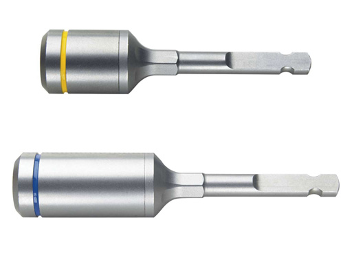 The Drive Adaptors enable power insertion of self-drilling Schanz Screws and Steinmann Pins in a quick one-step procedure which reduces insertion temperature and time. The drivers have a retention mechanism with a snap-in feature for easy insertion and removal of the screws. They can be used with a T-handle Chuck for manual insertion. Until now, no drive adaptors were available from AO, therefore forcing surgeons to use other chucks which are not optimal.