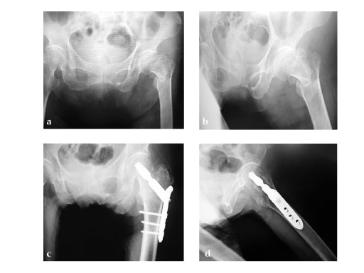 The surgical technique of the LCP DHS with collar is the same as that of the DHS. The only difference is that the antirotational screw must be inserted through the collar. However, the changes in geometry of the LCP DHS with collar (collar, LCP hole, undercuts, bullet nose at the distal end of the plate) offer the surgeon the possibility to achieve angular stability of the fixation and to choose a less invasive approach. Undercuts help to improve the periosteal blood supply.