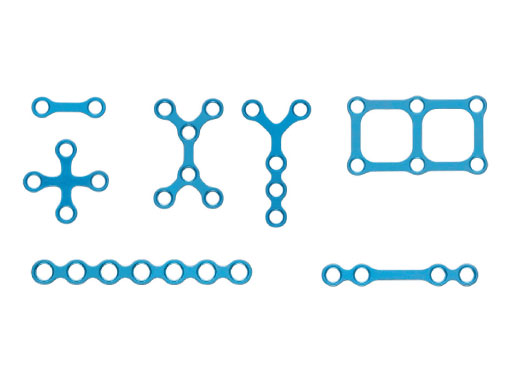 In order to meet the need for low profile in neurosurgical applications broad Matrix Neuro plates are 0.4 mm thick, which is significantly less than the currently existing low profile system. Still they provide maximum strength being comparable in bar stiffness. Full selections of titanium plates such as 2-hole and 4-hole dog bone, y-plate and box plate and burr hole covers are available.