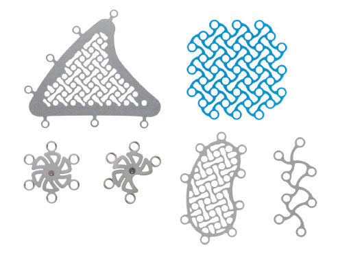 The Matrix Neuro contourable mesh is available in a variety of shapes and sizes to meet the needs of the individual patient. An addition to the malleable mesh another more rigid version is available. Both versions are 0.4 mm thick. The unique design allows screw placement through either side of the mesh. It is color-coded based on strength characteristic. Specialty shapes, such as strut mesh, temporal mesh, and the mastoid mesh are available as well.