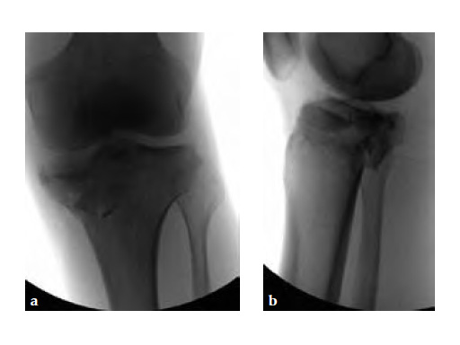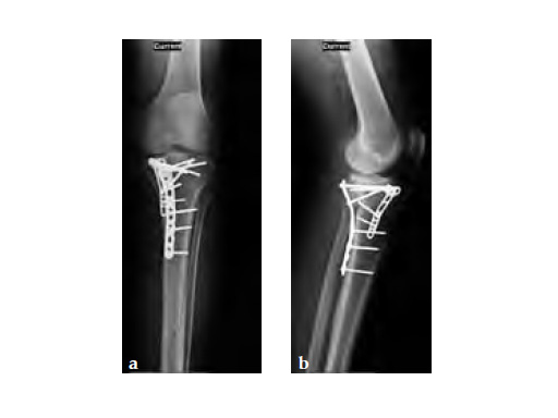 Initially taken for incision and drainage and then ORIF . Patient placed in a floppy lateral position with the effected lower extremity externally rotated (opposite hip and shoulder bumped up about 3040) allowing exposure of the posterior medial knee. A posterior medial and an anteromedial incision were used to repair the fracture with a 67 cm skin bridge.