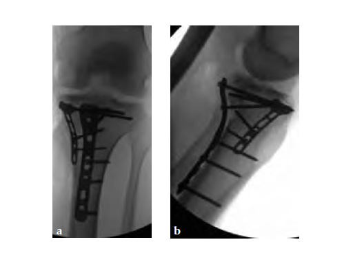 The system consists of six anatomically precontoured plates (1, 2, 4, 6, 8, or 10 shaft holes) with a range of six lengths (72-186 mm). The low profile plate head limits soft-tissue irritation and features four locking holes; one slotted for ease of plate positioning. The 3.5 mm LCP holes in the shaft enable fixation of posteromedial fragments with locking or non-locking screws.