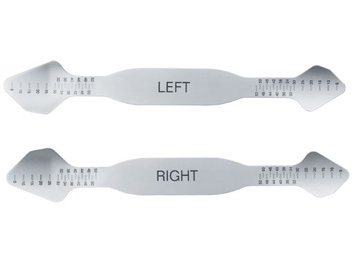 The retractor comes as a pair with one version for each side. Both are clearly marked as left and right and are also etched with a calibration scale on both sides that helps to estimate the anatomical situation in the patients orbit. The retractor is made out of stainless steel, yet it is malleable. Each version has a large and a small end with the design