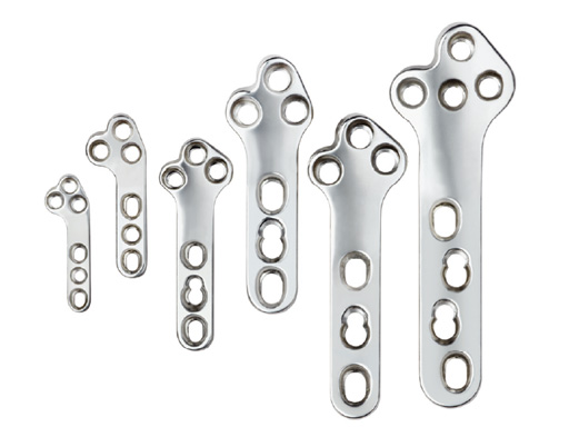 Until recently, the plates were available in four different profiles: 2.7 mm, 3.5 mm small stature, 3.5 mm, and 3.5 mm broad. Now the 2.0 and 2.4 mm TPLO plates have been added to the system for use in small dogs and cats. The plates and screws are available in 316L stainless steel. The TPLO plates can accommodate locking or cortex screws that correspond to the size of the plate used.