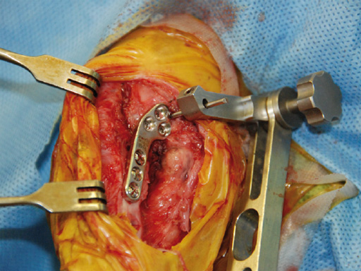 Tibial plateau leveling osteotomy can be performed through a small medial incision over the proximal tibia when using arthroscopy to inspect and treat intraarticular structures. Patients will typically walk on the leg soon after surgery. It is recommended to restrict activity for 8 weeks to walking only. The osteotomy typically is healed within 8 weeks and return to function can begin progressively after radiographic evidence of healing. Long-term prognosis is excellent. The implants are typically left in place for the life of the patient, unless implant removal is necessary due to clinical problems.