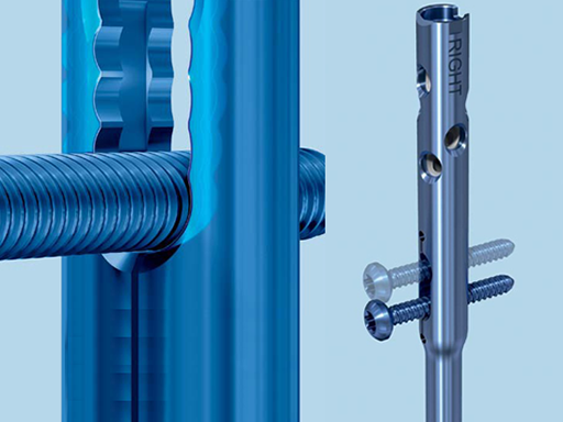 In 2011, the MultiLoc Proximal Humeral Nail (PHN) was launched, which was designed in an effort to improve nailing osteosynthesis stability and thus expand the indications for nailing at the proximal humerus. The nail is Xmas tree in design, with the innovative screw-in-screw technology that improves fixation in osteoporotic bone. The modular implant configuration allows for the treatment of both simple and complex fractures.