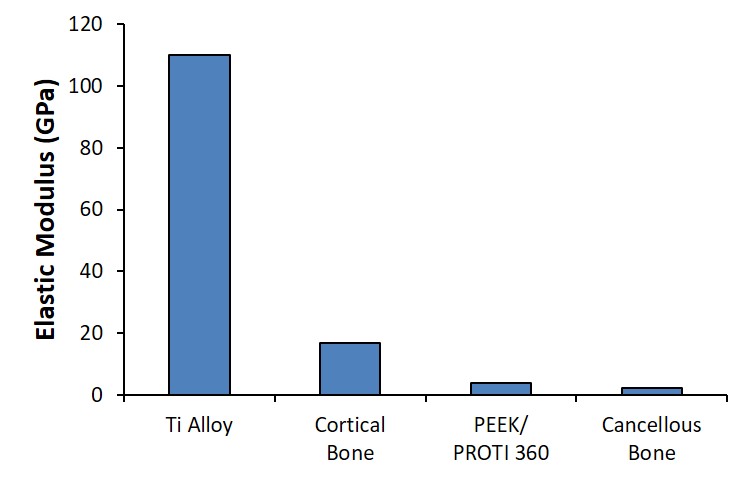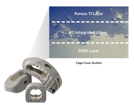 The PEEK core of the interbody device has an anatomically relevant Module of Elasticity, providing mechanical stability and effectively dispersing dynamic loading in the spine to minimize stress shielding effects (Fig 2).