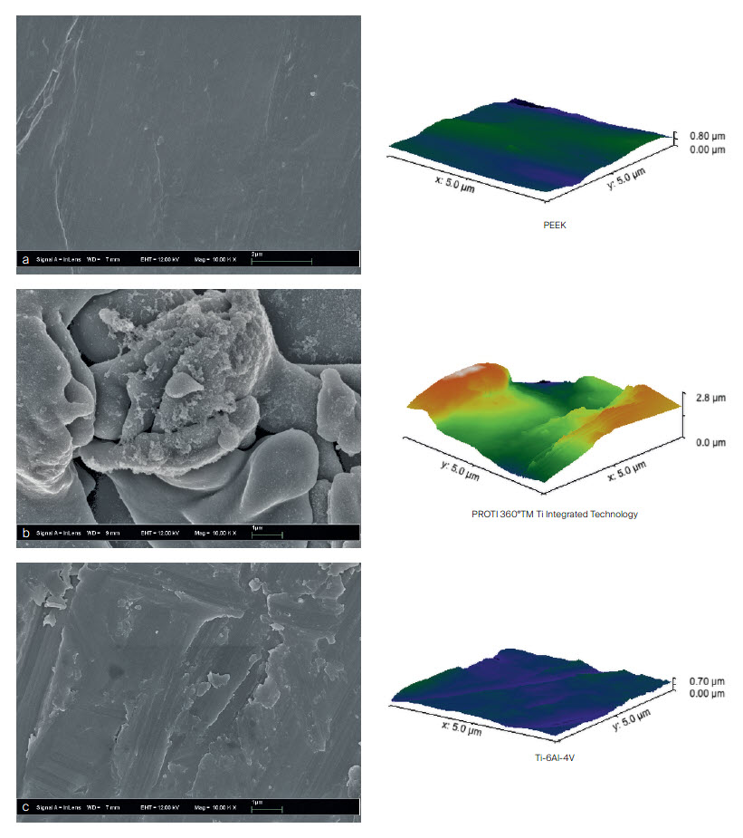 The PROTI 360° cage surface incorporates roughness at the macro-scale intended to improve friction fit within the disc space (Fig 3) [5]. Additionally, roughness at the micro- and nanoscales is intended to enhance cell-substrate interactions to support bone growth (Figs 4,5).