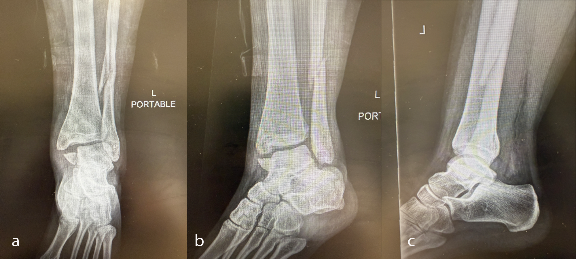 A young adult had an accident, sustaining a trimalleolar ankle fracture with syndesmosis disruption (Fig 33).