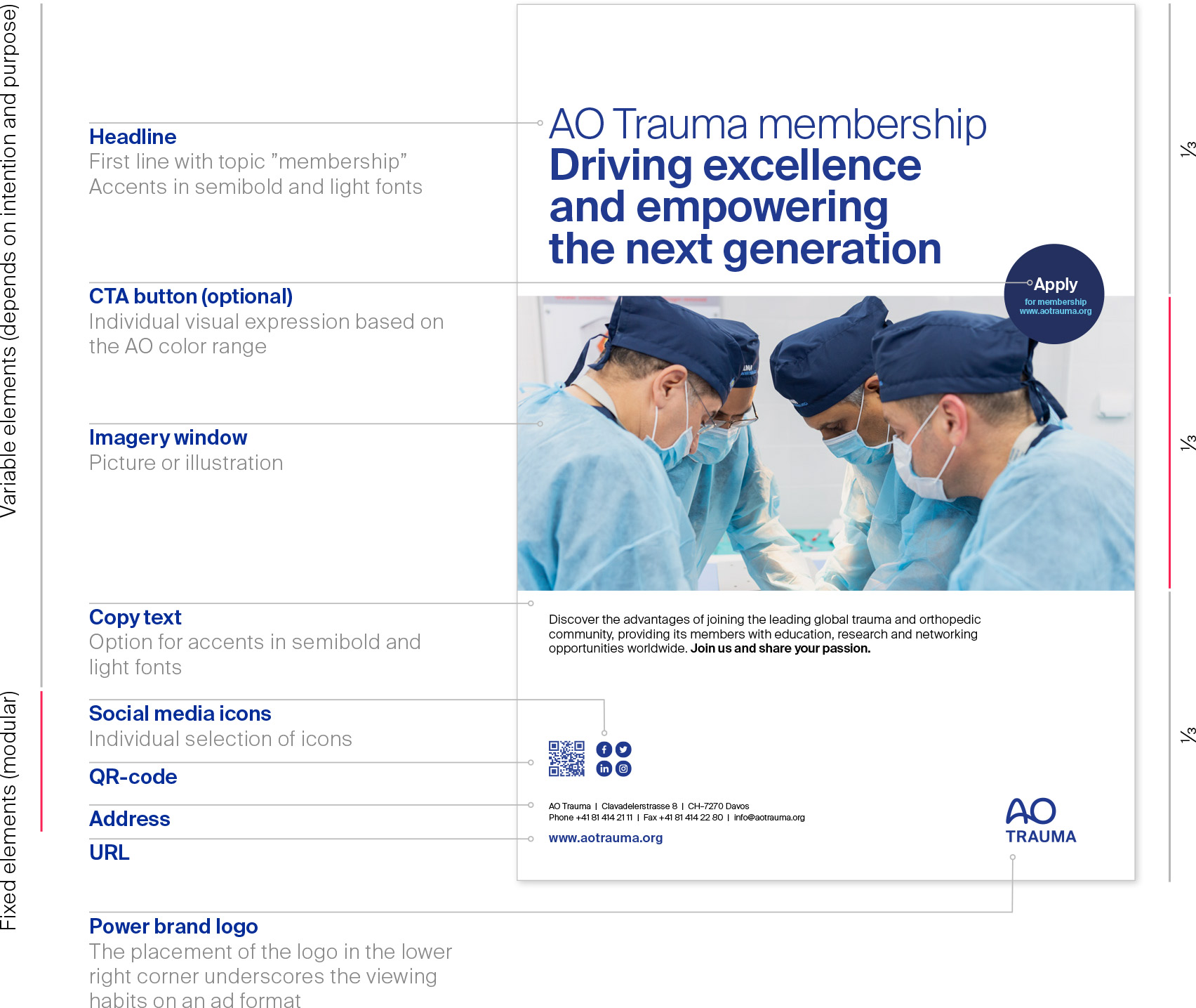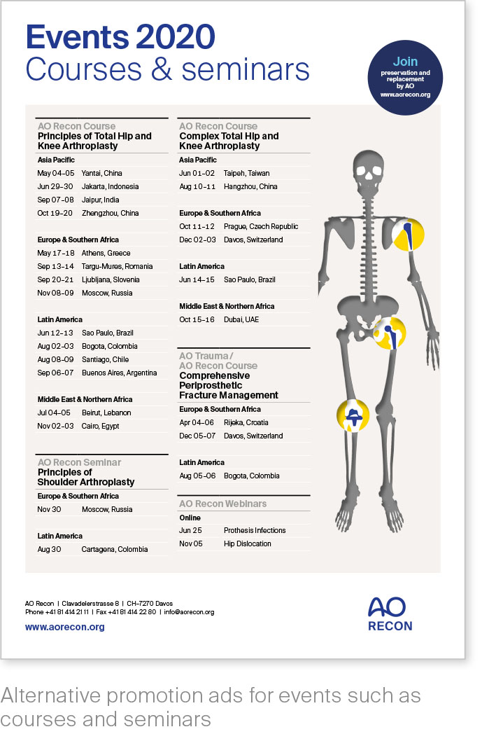 Print ads are used in medical magazines or in course programs to promote a variety of AO benefits, such as a membership or a key service offering.