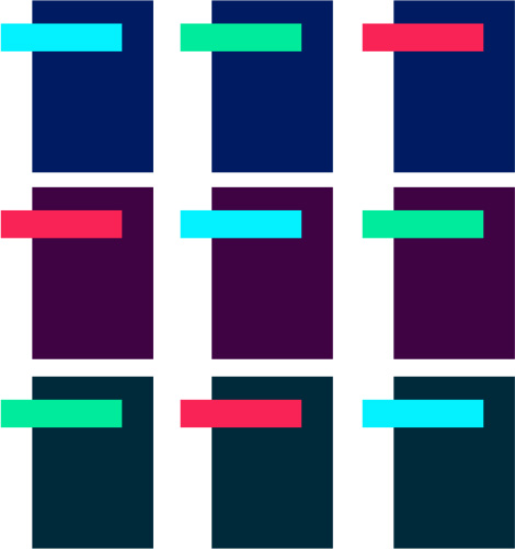The overall color use per medium is based on the scheme shown here. The aim is a consistent color impression across all media. AO blue is weighted so that it is immediately perceived as the primary color, but does not appear too dominant in the overall impression due to sufficient white space.