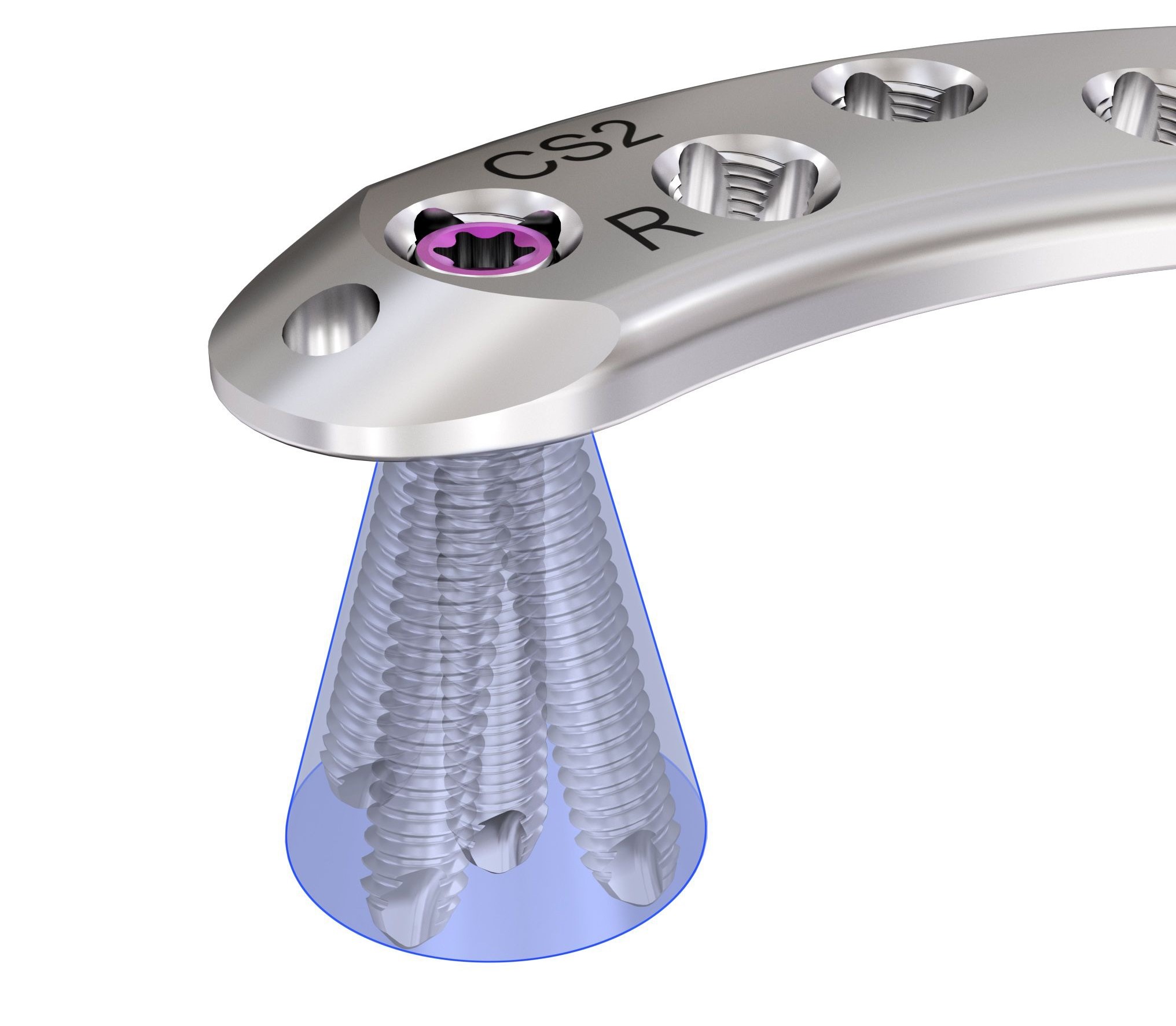 Fig 5 All potential insertion angulations for the VA screw in the VA-LCP Clavicle Plate 2.7 System.