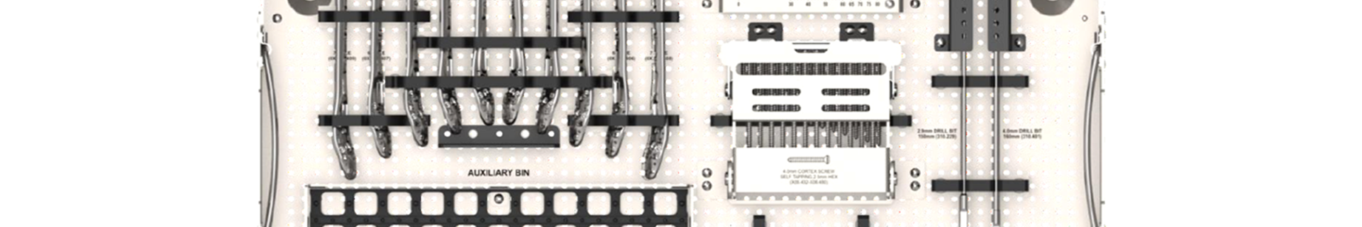In addition, a new anatomic tray will be introduced for the Universal Small Fragment (USF) System which can be stocked with stainless steel or titanium VA-LCP Lateral Distal Fibula plates (Fig 2). The tray contains 4.0 mm cortex screws up to 80 mm length as well as instruments for syndesmotic fixation. It can be used in combination with the original Universal Small Fragment Core Set or a modified core set specifically designed to treat ankle fractures. More information about the USF System can be found here.