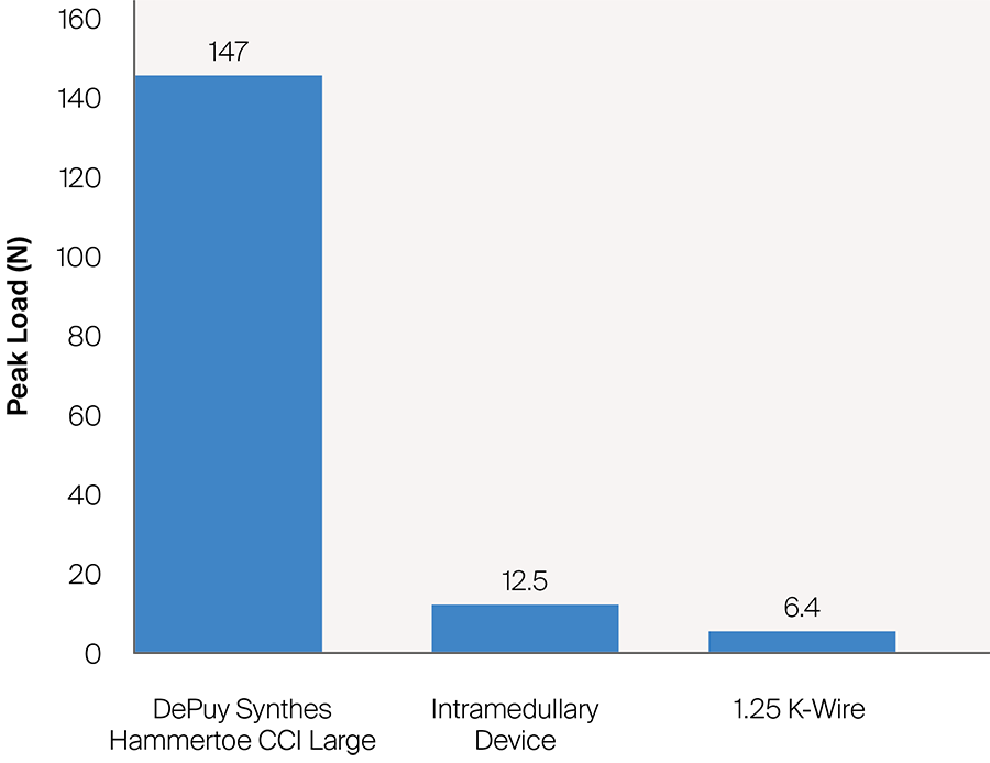 Hammertoe deformities are one of the most frequent deformities treated by foot and ankle surgeons. In rigid and structured hammertoe deformities not suited for nonoperative management, arthrodesis of the proximal interphalangeal (PIP) joint represents the standard treatment. Temporary K-wire fixation is the most frequently used, low-cost fixation method for PIP joint fusion. However, reported complications associated with K-wires have prompted the development of new implants over the past decade. To address weaknesses of intramedullary fixation concepts (eg, limited rotational stability), the Foot and Ankle Expert Group approved the first extramedullary continuous compression implant (CCI) to treat hammertoe deformities – the DePuy Synthes Hammertoe Continuous Compression Implant (DPS Hammertoe CCI).