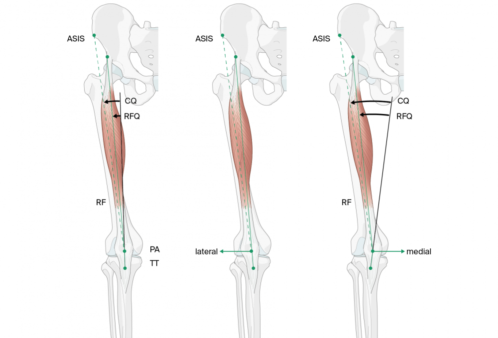As a general rule, any manipulation of the normal anatomical and kinematic relationships of knee structures that increases tension in the lateral retinaculum or increases the quadriceps angle, or Q-angle (Figure 1), will produce an abnormal, laterally-directed muscle vector and thus cause lateral maltracking of the patella, instability of the PF joint, and more serious patellar complications if left untreated [3, 4].