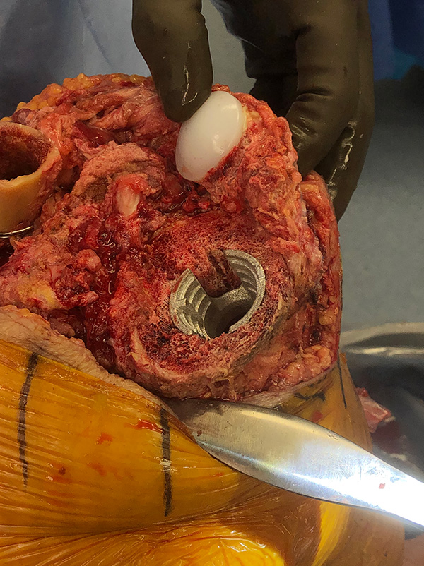 There may be cases in which the shape of the defect makes it impossible to create a perfect circumferential press fit on all sides of the cone due to bone loss being more prominent on one side compared to the other. In such situations, voids may be filled with morselized graft, demineralized bone matrix, or a suitable synthetic bone substitute. This is tightly packed around the cone until maximal stability is ascertained. This maneuver is not only to enhance the primary stability but also to prevent cement from flowing into the interface between cone and host bone when the final component is cemented into position.