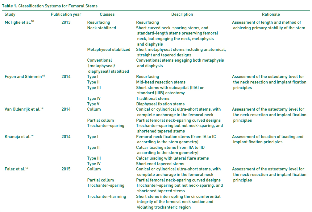 As has been reviewed by Y-H Kim [5], many have tried to classify short stems based on different considerations (see Table 1 for a nonexhaustive summary).